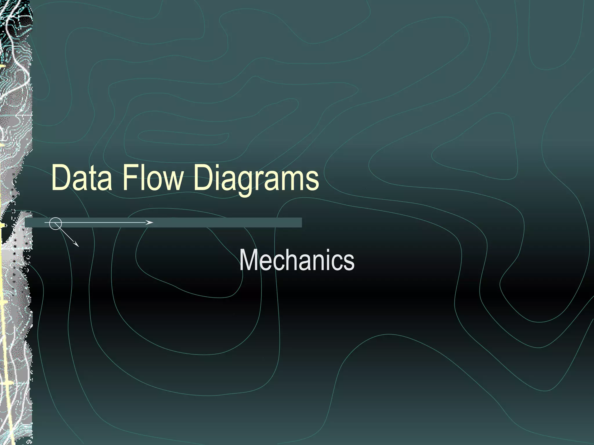 Data flow diagrams (DFDs) are used to represent the flow of data in a system. They consist of symbols including external entities, data stores, processes, and data flows. There are several rules for constructing accurate and useful DFDs: