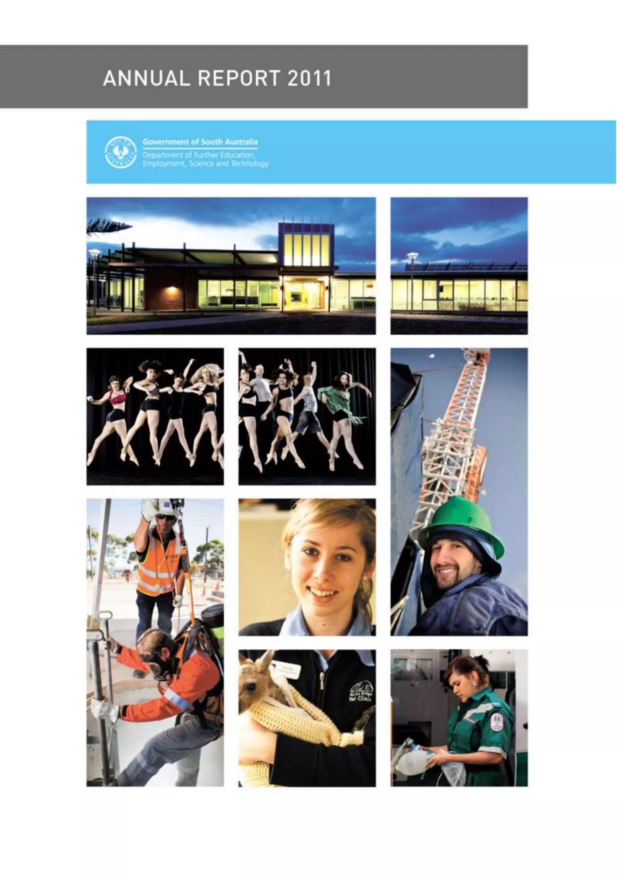 The 2011 Annual Report for the Department of Further Education, Employment, Science and Technology (DFEEST) outlines the organization's role in developing South Australia's workforce and enhancing education and training systems. Key highlights include the implementation of the 'Skills for All' reform, introduction of new training initiatives, significant funding allocations, and high student satisfaction ratings within TAFE SA. The report emphasizes collaboration with industry, development of infrastructure, and improvements in vocational education and training quality.