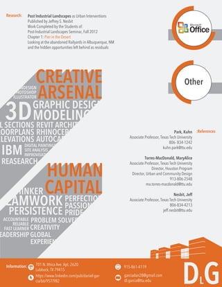 Daniel Garcia has extensive experience in architecture and digital design. He received both his Master of Architecture and MBA from Texas Tech University. Garcia has knowledge of Revit, Rhino, AutoCAD, and Adobe programs. He has worked as a teacher's assistant in building information modeling and volunteered organizing a community fun run. Garcia has participated in exhibitions focusing on urban design and restoring historic buildings. He continues to pursue new skills and challenges in the architecture and design field.