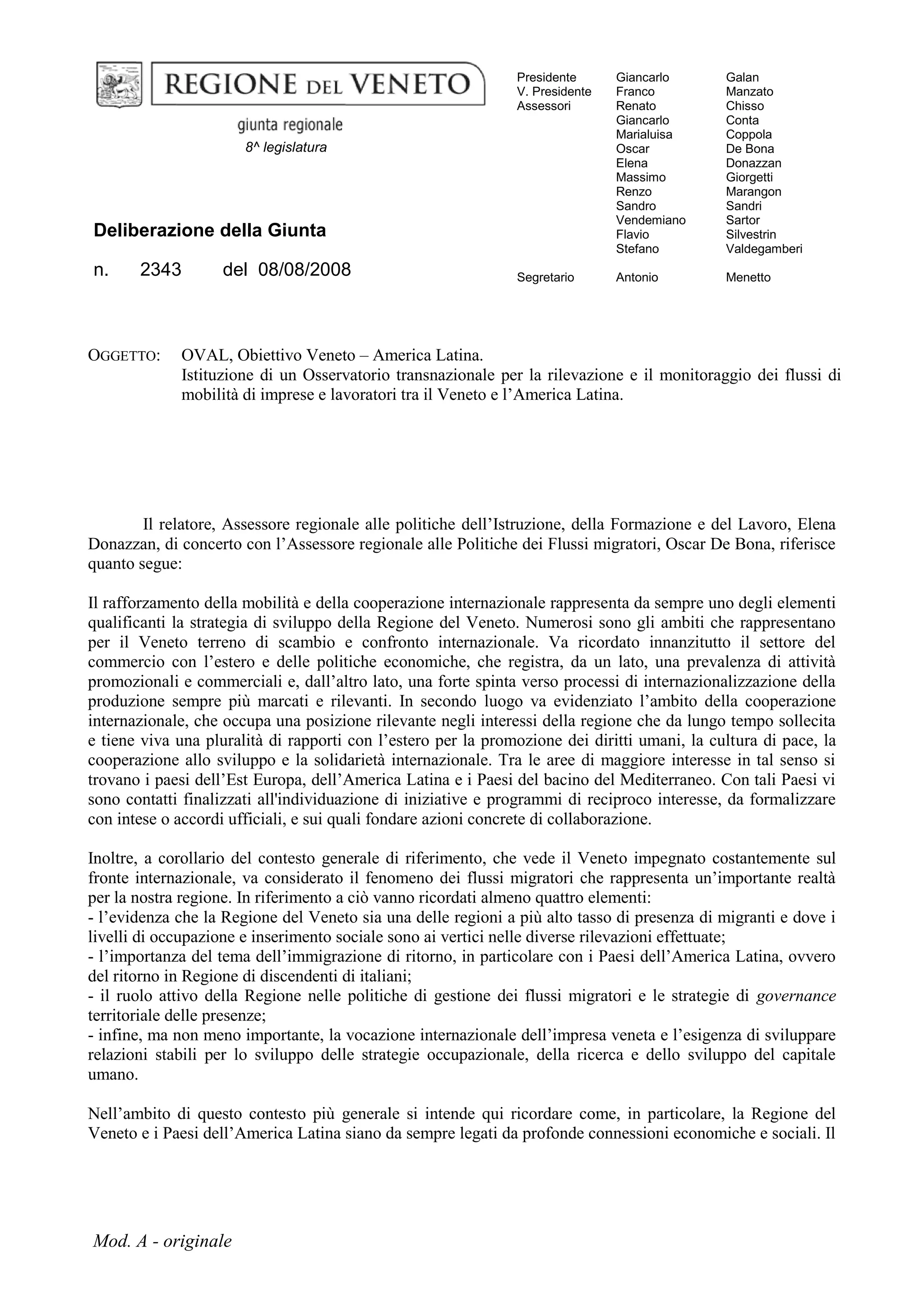 La Giunta Regionale del Veneto ha approvato la creazione di un osservatorio transnazionale, denominato Oval, per monitorare i flussi di mobilità di imprese e lavoratori tra la regione e l'America Latina. Questo progetto mira a rafforzare la cooperazione internazionale e a gestire i flussi migratori, coinvolgendo enti come Veneto Lavoro e l'Università di Padova. Il finanziamento regionale per l'iniziativa ammonta a 100.000 euro, con modalità specifiche di erogazione.