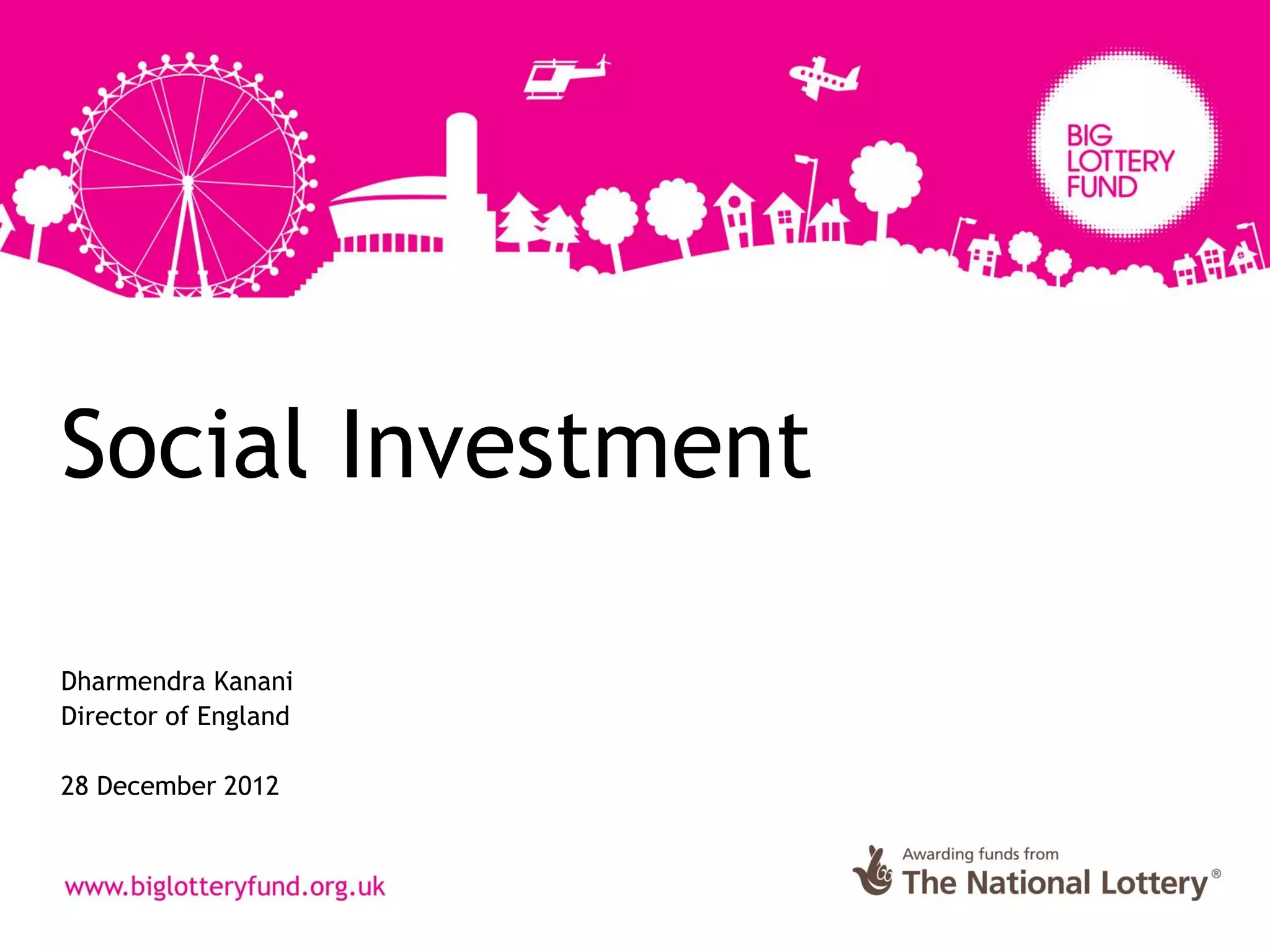 This document discusses social impact bonds and how they work. Social impact bonds allow investors to fund social service organizations working with a target population. If the organizations deliver positive social outcomes, the government pays investors based on the results. This provides funding for interventions while transferring performance risk from the government to investors. The six key steps are: 1) government and investors sign a contract setting payment amounts per outcome, 2) investors provide funding based on the contract, 3) funding is used by social service organizations to work with those in need, 4) the organizations deliver services to improve outcomes, 5) positive outcomes are achieved benefiting society and reducing government costs, 6) the government pays investors based on results achieved.