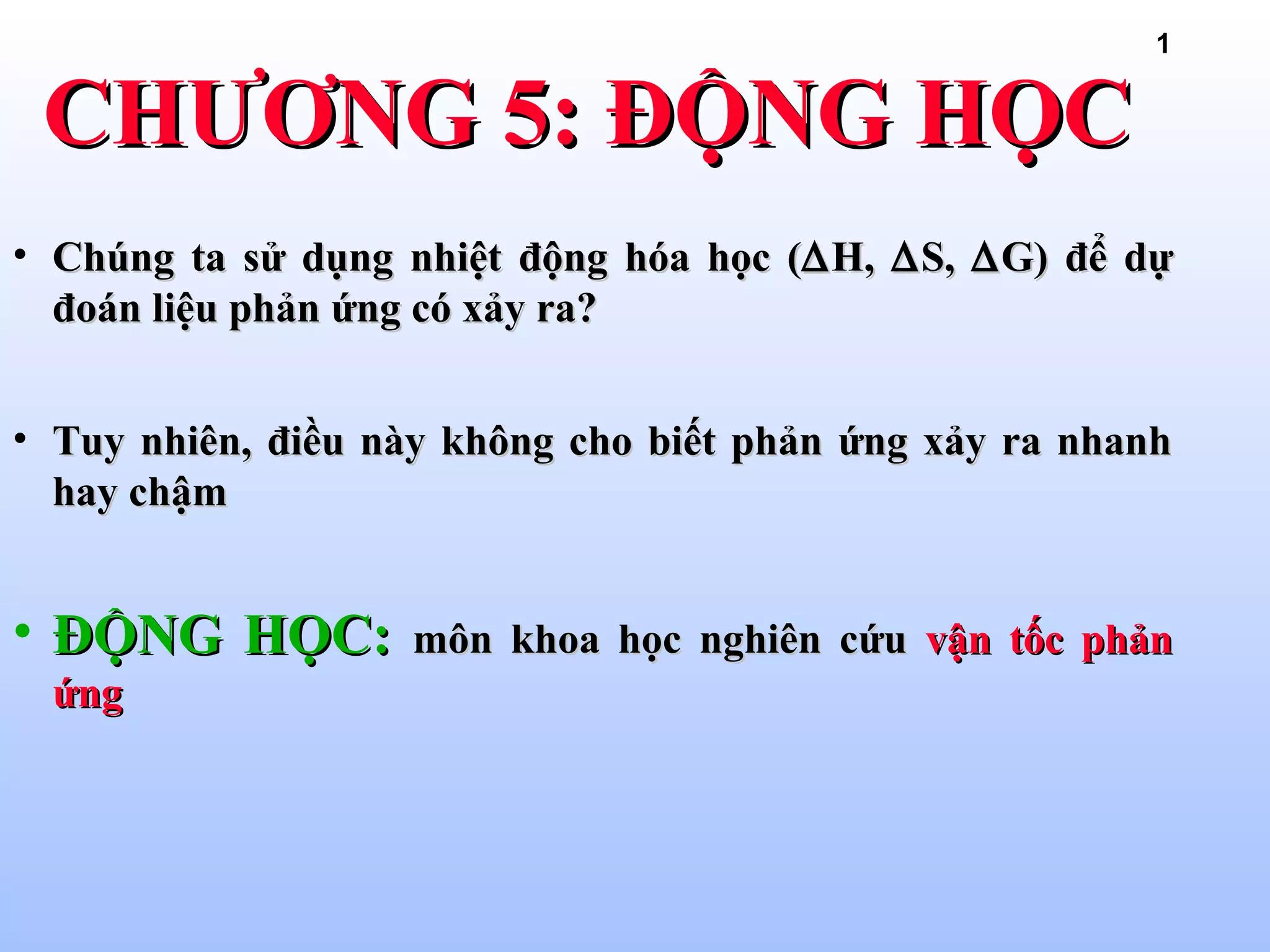 Tài liệu bàn về sự khác nhau giữa nhiệt động học và động học trong phản ứng hóa học. Nó nêu rõ các điều kiện cần thiết cho phản ứng xảy ra, bao gồm va chạm phân tử và năng lượng hoạt hóa, cũng như ảnh hưởng của nồng độ, nhiệt độ và xúc tác đến vận tốc phản ứng. Ngoài ra, tài liệu cũng đề cập đến cân bằng hóa học và các yếu tố ảnh hưởng đến nó.