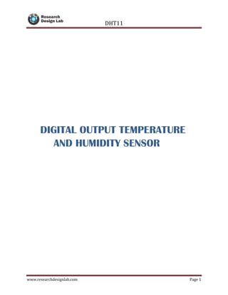 The DHT11 is a digital temperature and humidity sensor that offers calibrated output, high reliability, and low power consumption, with measuring ranges of 20-90% RH for humidity and 0-50°C for temperature. The sensor utilizes a specific data transfer protocol with a microcontroller, delivering data in a 40-bit format that includes relative humidity and temperature values, along with a checksum for error verification. Various specifications, including power requirements and communication methods, are outlined, alongside example Arduino code for implementation.