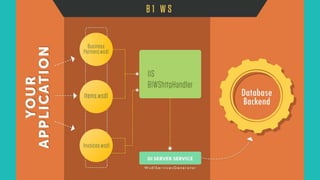 The document discusses different methods for integrating third party systems with SAP Business One (B1), including DI API, B1 Web Services (B1WS), and DI Server. It provides details on each method, including advantages and limitations. The presenter is Abhishek Sur, Product Head for InSync Solutions, who has expertise in Microsoft technologies and SAP B1 integration.