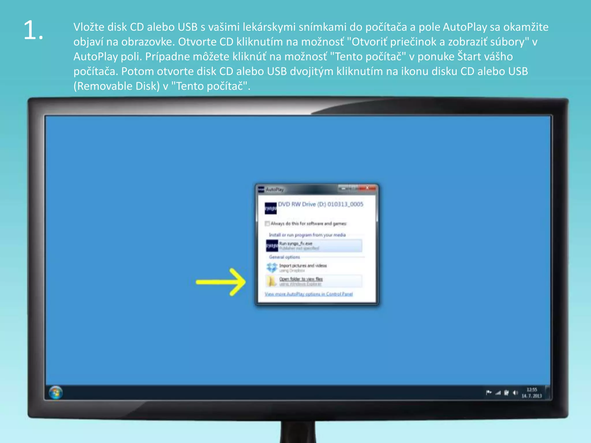 1. Vložte diskCD alebo USB s vašimi lekárskymi snímkami do počítača a pole AutoPlay sa okamžite