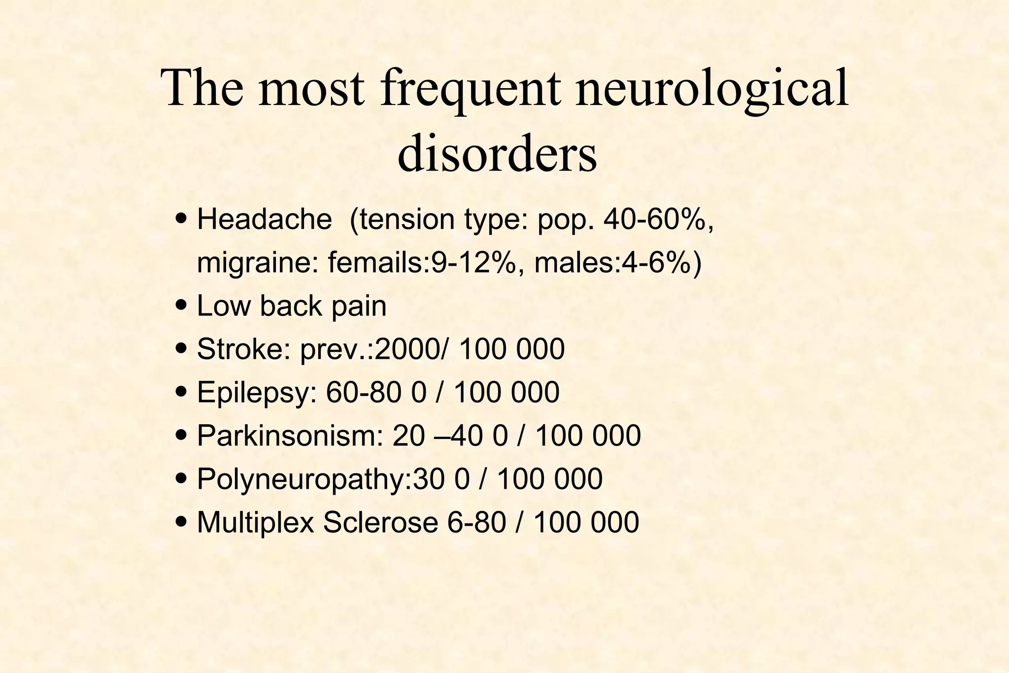 1. Common neurological disorders such as headache, low back pain, and stroke.