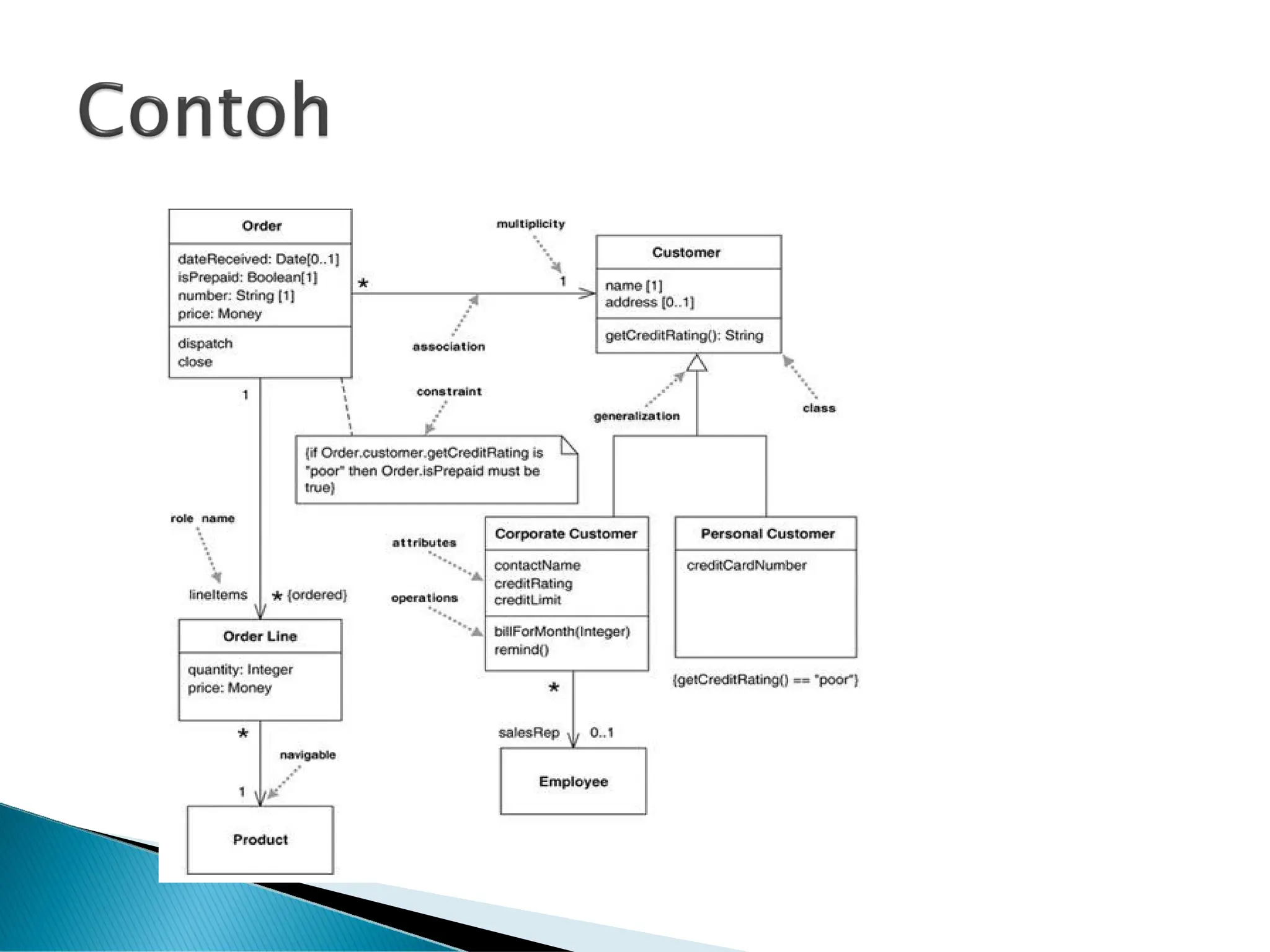 digunakan dalam diagram kelas untuk menentukan
