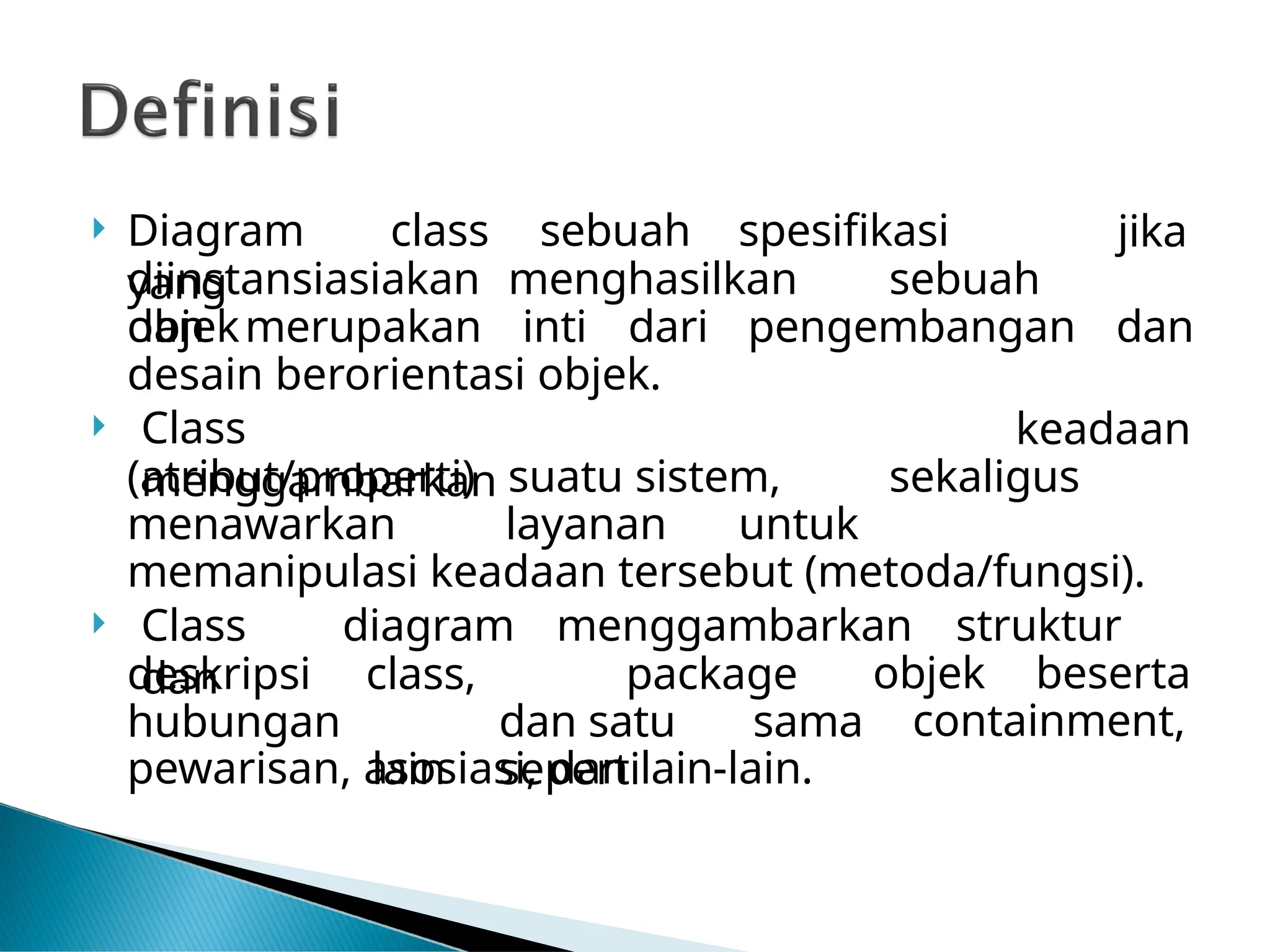 Class adalah deskripsi lebih dari satu atau lebih