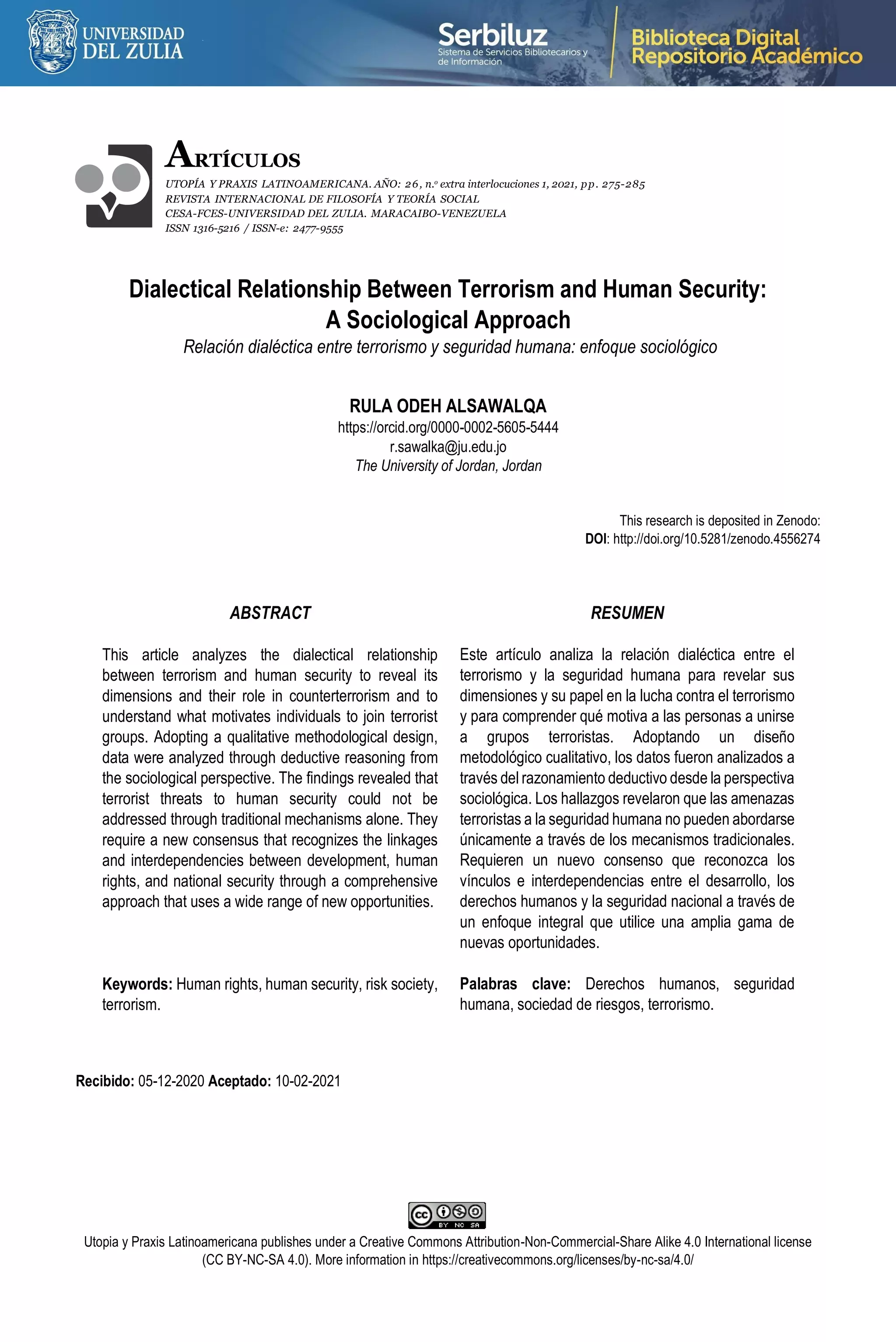The article examines the complex relationship between terrorism and human security, highlighting how traditional counterterrorism methods are insufficient and emphasizing the need for a comprehensive approach that intertwines development, human rights, and national security. Utilizing qualitative research, the findings suggest that addressing terrorist threats requires understanding individual motivations and recognizing the multifaceted dimensions of human security. The study underscores the significance of redefining security in a way that prioritizes individual dignity and societal well-being, particularly in the context of global challenges such as poverty, political instability, and extremism.
