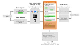 The document outlines how to create a conversational agent using Dialogflow, which utilizes machine learning and natural language processing on the Google Cloud Platform. It details the process of creating an agent, defining intents, and setting up fulfillment by deploying a service via Google Cloud Functions. The document serves as a guide to building conversational experiences that can scale across multiple devices and languages.