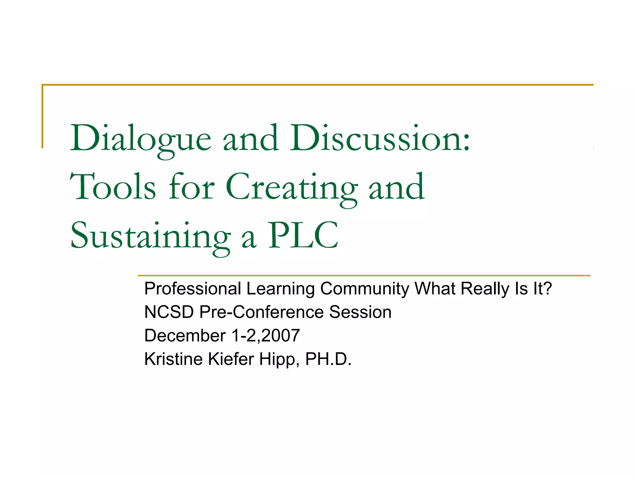 This document discusses the importance of developing a positive professional learning community (PLC) culture through dialogue. It outlines that a toxic culture must change through examining underlying mental models and having skillful discussions. Dialogue is highlighted as a process that balances advocacy and inquiry, encourages listening to develop shared understanding, and challenges assumptions. The document advocates for dialogue through truthful conversations where all voices are heard to cultivate change.