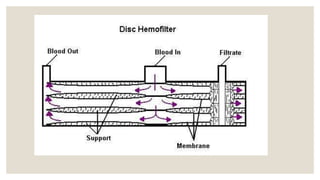 The document discusses dialysis machines, specifically dialyzers, which act as artificial kidneys to assist patients with renal failure by clearing toxins and balancing blood constituents. It highlights the history of dialysis, the components and working principles of dialyzers, and various types of dialyzers, including their advantages and disadvantages. Additionally, it mentions potential reactions to different dialyzer membrane types and the overall application of hemodialysis in medicine.