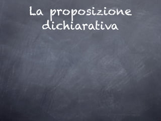 La proposizione dichiarativa esplica e chiarisce un elemento della reggente, non essendo un predicato. Può essere introdotta da nomi generici o pronomi dimostrativi e può avere forme esplicite e implicite. Essa si distingue per l'uso di congiunzioni e può presentare verbi all'infinito con soggetto coincidente con quello della reggente.