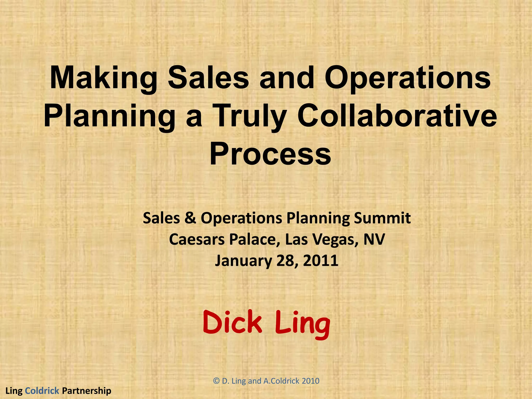 The document discusses improving the sales and operations planning (S&OP) process through collaboration. It provides context on the history of S&OP, emphasizing early focus on leadership and aggregate management rather than collaboration. More recently, the authors have come to see collaboration as important. An effective S&OP requires integrating demand and supply reconciliations in a collaborative, cross-functional way.