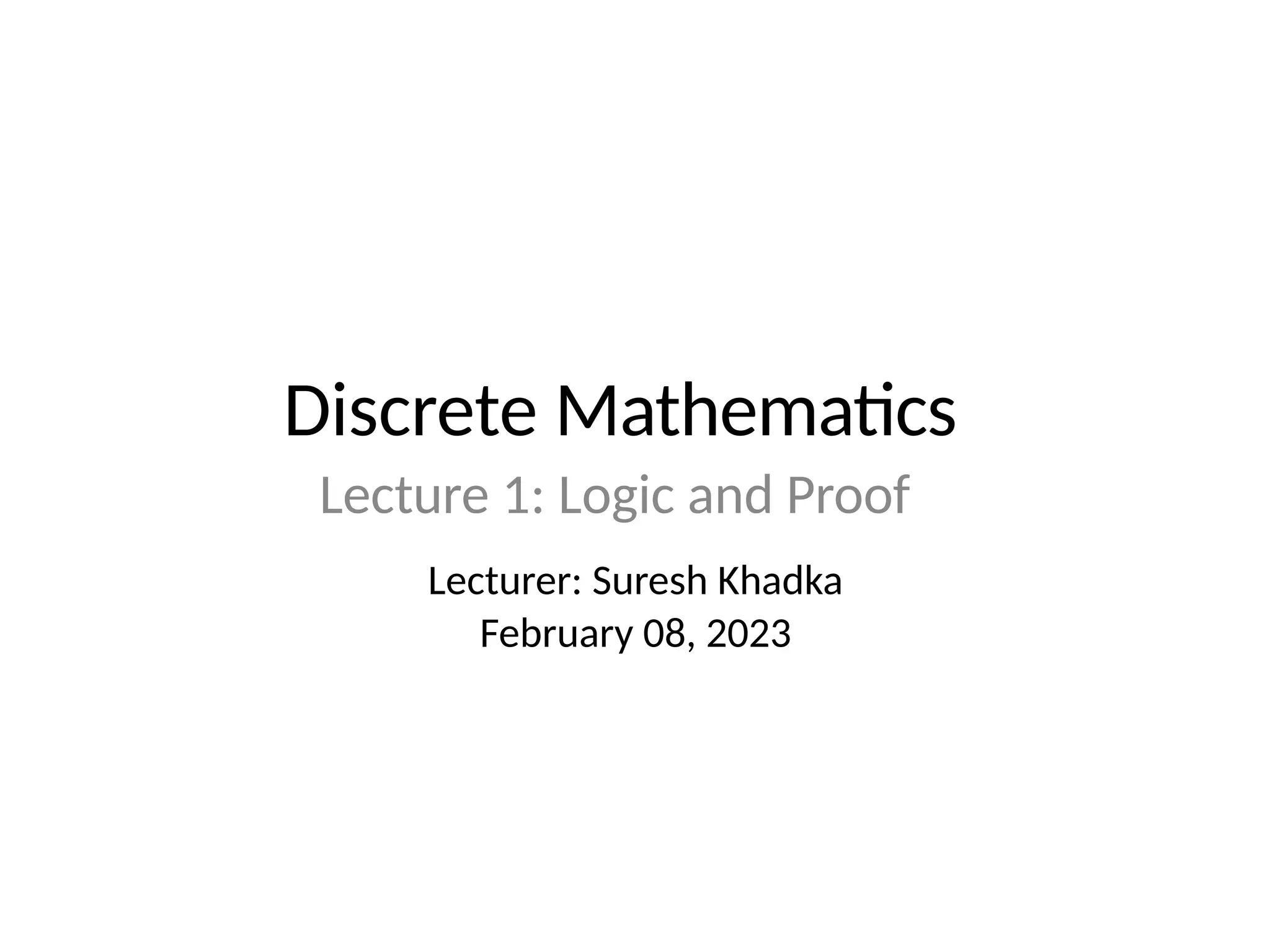 The document is a lecture on logic and proof in discrete mathematics, focusing on propositions and logical connectives. It covers types of propositions, the formation of compound propositions using operators like negation, conjunction, disjunction, and discusses conditional statements and their various forms. The lecture also includes examples of translating English sentences into logical expressions and the concept of truth tables for compound propositions.