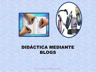 UN BLOG ES,ENTRE OTRAS COSAS, UNA INTERESANTE Y FLEXIBLE HERRAMIENTA DE INTERACCIÓN PARA DOCENTES Y ALUMNOS/AS YA QUE PERMITE OTRAS FORMAS DE PRODUCIR Y PUBLICAR CONTENIDOS SIN LA NECESIDAD DE SER EXPERTO EN INFORMÁTICA. Ing. Telmo Viteri - tviteri@pucesa.edu.ec