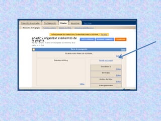 Un blog esuna aplicación web, que se administra a través de un panel de control online. Incluye herramientas para:• Escribir y editar artículos y páginas.• Configurar las distintas opciones: escritura, lectura, discusión, …, etc.• Establecer las categorías o temas y los enlaces a otros sitios web.• Moderar los comentarios que hacen los visitantes.• Administrar los usuarios y los permisos que estos tienen: administrador, editor, colaborador,…, etc.• Configurar el aspecto visual del blog, a través de un repertorio de plantillas.Ing. Telmo Viteri - tviteri@pucesa.edu.ec