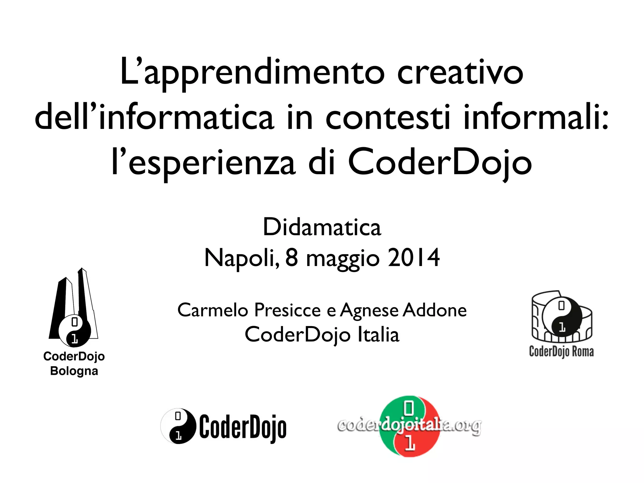 Il documento descrive l'importanza dell'apprendimento creativo dell'informatica attraverso l'esperienza di CoderDojo, un'iniziativa che promuove il coding per i giovani. Viene sottolineato il valore di un approccio informale e collaborativo, in cui i mentor supportano i bambini nei loro progetti. Sono presentate sette regole fondamentali per i mentor per favorire un ambiente di apprendimento positivo e stimolante.