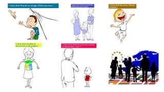 The document outlines children's rights as defined by the UN Convention on the Rights of the Child. It discusses that the convention establishes that children have inherent rights, including rights to protection, healthcare, education, free time and play, privacy, and family. The convention was created by the UN in 1989 and has been ratified by 192 countries, establishing 54 specific rights for children. However, children's rights are still not fully enforced in all countries.