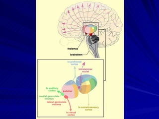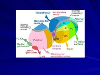 Nuclei dorsales thalamiNDL: Afferentleri-coliculus superior ve pretectum Efferentleri- gyrus cinguli NLP: Lobus parietalis superior ile karşılıklı NP: Afferent-colliculus superior, Efferent: temporal, parietal ve occipital lob