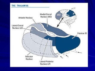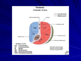 Nuc. mediales thalamiFonksiyon Nuc. mediodorsalis: davranış ve emosyon Lezyonunda korku, gerginlik agresif ve obsesif düşüncelerde azalma görülür Nucleus mediodorsalis-prefrontal korteks arasında fonksiyonel paralellik