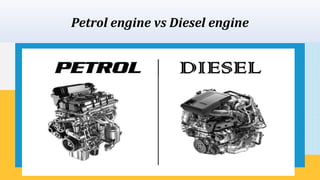 The document compares petrol and diesel engines, detailing their ignition processes and working cycles. A petrol engine ignites a fuel-air mixture via a spark plug, while a diesel engine uses compressed air heat to ignite diesel fuel. The text also mentions RSR Rungta Engineering College, which offers various mechanical engineering programs.