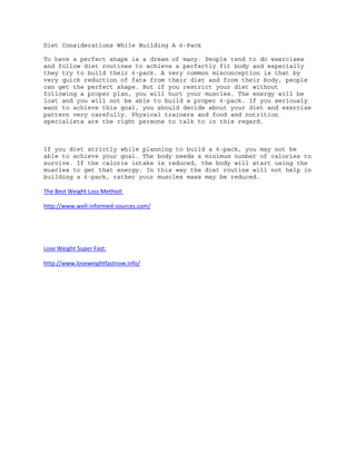 To build a six-pack, one must follow a careful diet and exercise plan rather than quickly reducing fat intake, as the latter can cause the body to break down muscles for energy instead of building them up. It is important to consult nutrition and fitness experts to develop the right diet that provides enough calories to support muscle growth while trimming body fat in a healthy way over time.