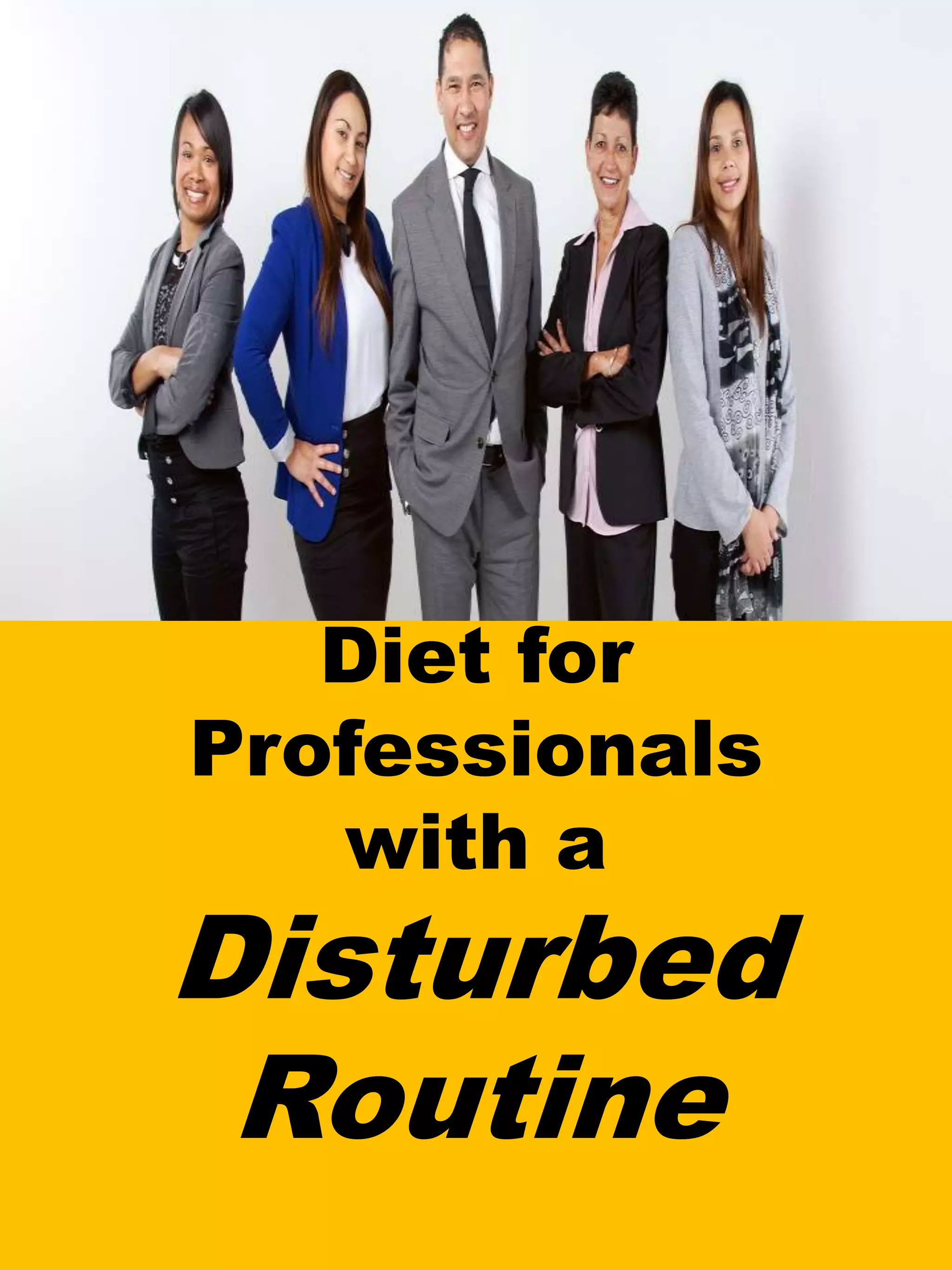 This document provides 10 tips for a diet for professionals with disturbed routines. Some key points include: