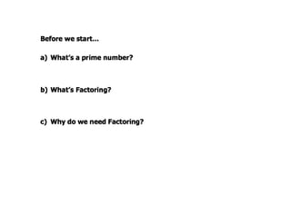 1. What isthe first step in any factoring problem?