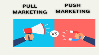 ○ Push marketing is loud and direct (like sales people chasing you to buy).