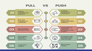 ○ Pull marketing is gentle—it makes you want to come to the product on your own.