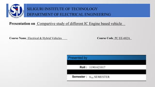 1) The document presents a comparative study of different internal combustion (IC) engine based vehicles.