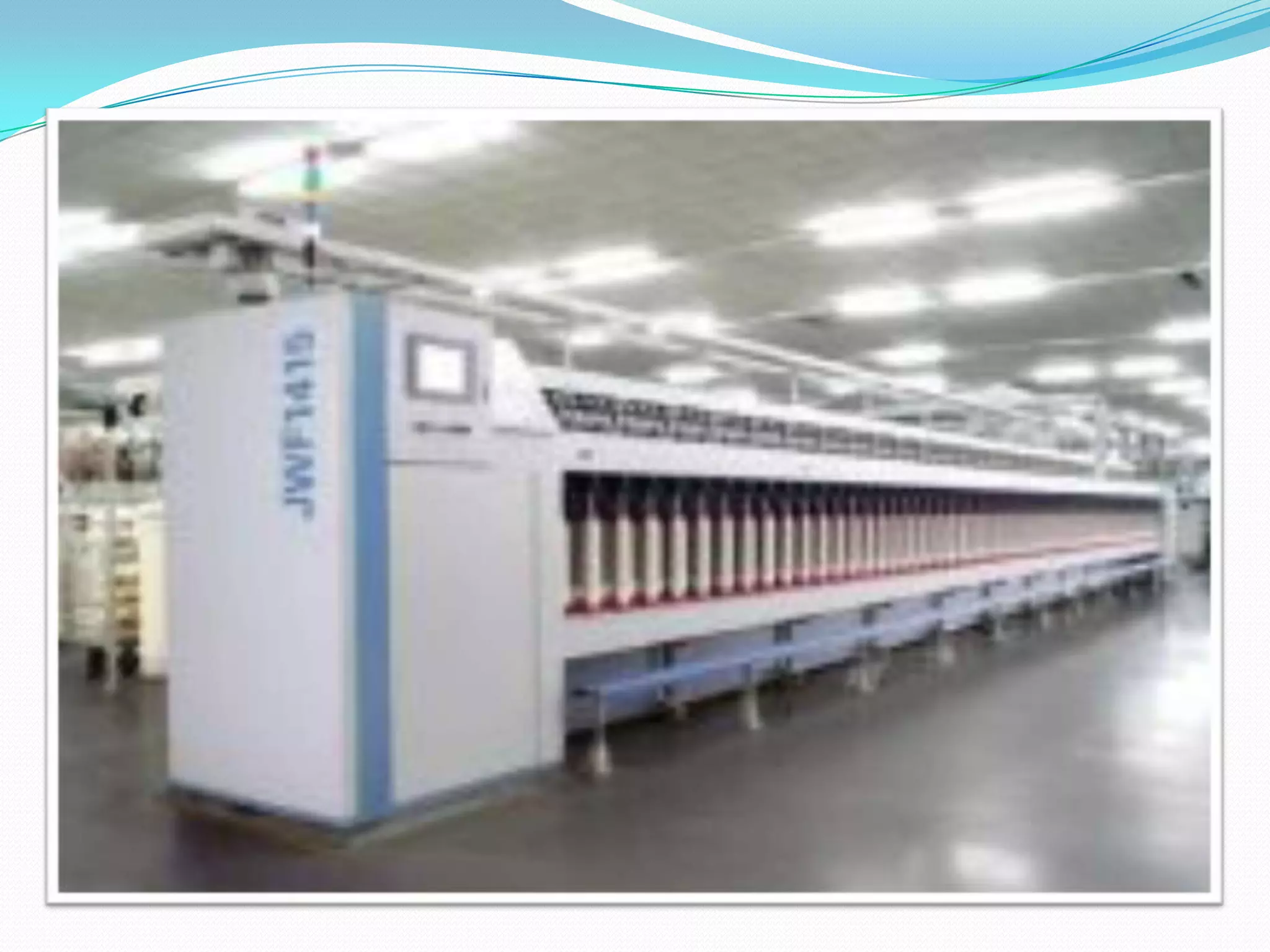 The fly frame takes the thicker draw sliver and drafts, twists, and winds it into a thinner roving package. It attenuates the sliver through multiple drafting rollers that increase in speed, which stretches and thins the material. A flyer inserts twist into the roving to hold the fibers together. The modern Toyoda FL-100 and FL-200 simplex machines have improved since the 1985 FL-16 model, with upgrades like changing from a cone drive system to independent servo motors for more accuracy and control of the drafting and winding process.