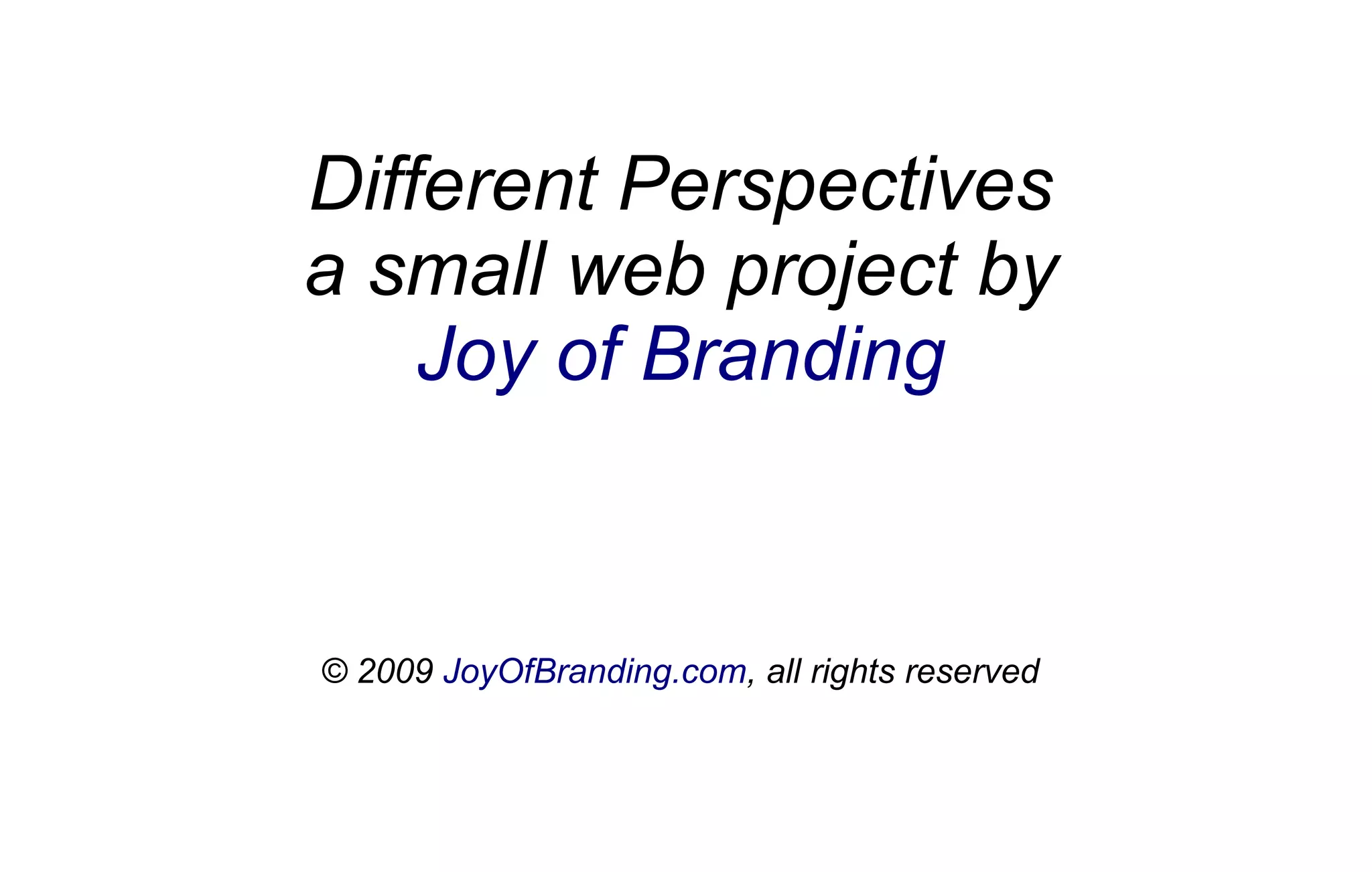 This short document presents different perspectives on a small web project created by Joy of Branding. It includes a copyright notice for Joy of Branding and indicates that it marks the end of the perspectives discussed.