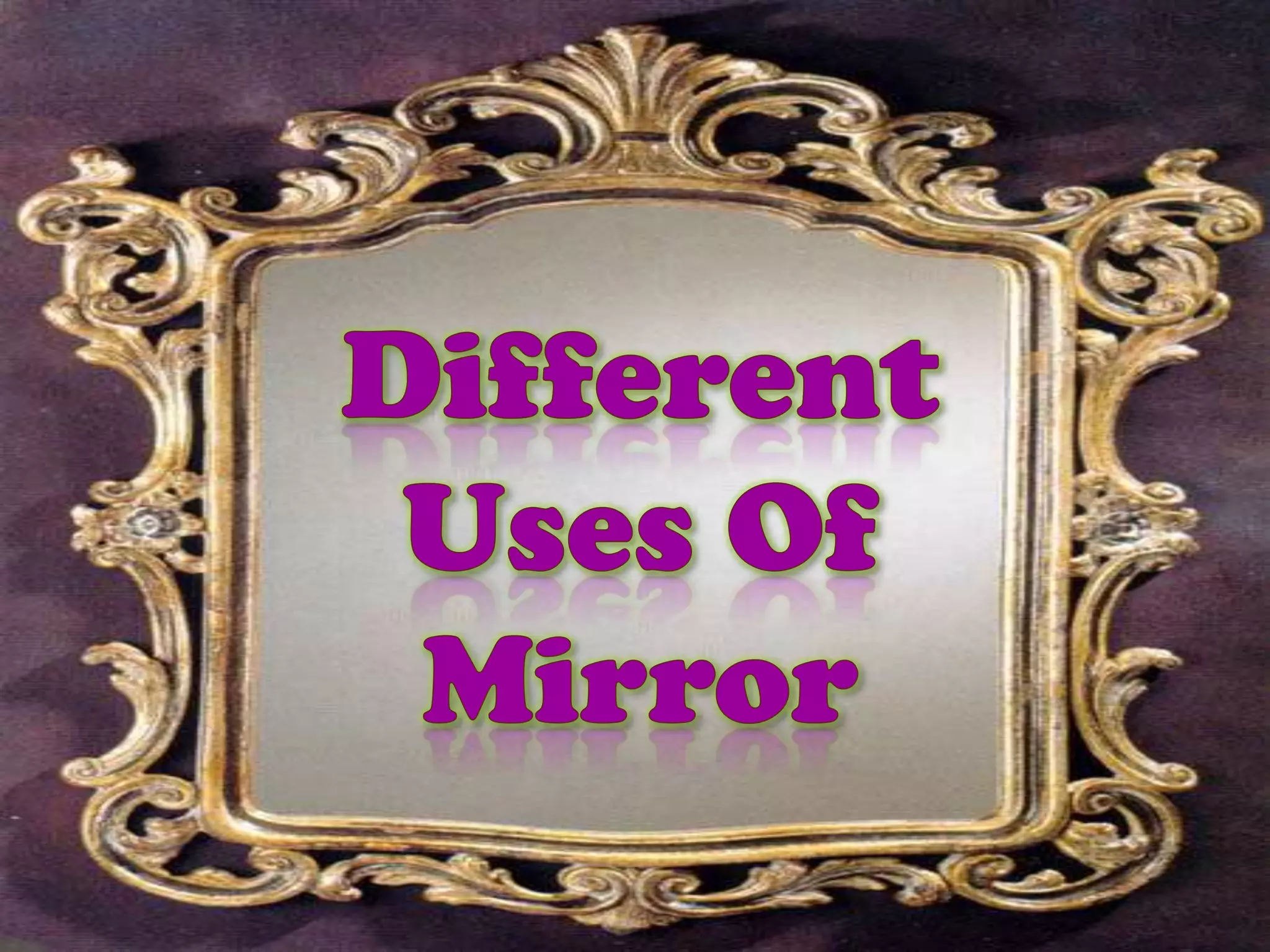 Mirrors serve various functions, including providing rear views in cars, aiding personal grooming in bathrooms, and assisting dentists in examining patients. They also come in decorative forms, such as fun house mirrors and disco mirror balls, and are utilized in various practical applications like examining hard-to-reach places or directing light. Additionally, mirrors are used in solar power generation by collecting sunlight.