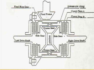 - In operation, driving torque is transmitted equally to each axle until traction is lost by one wheel. Then
