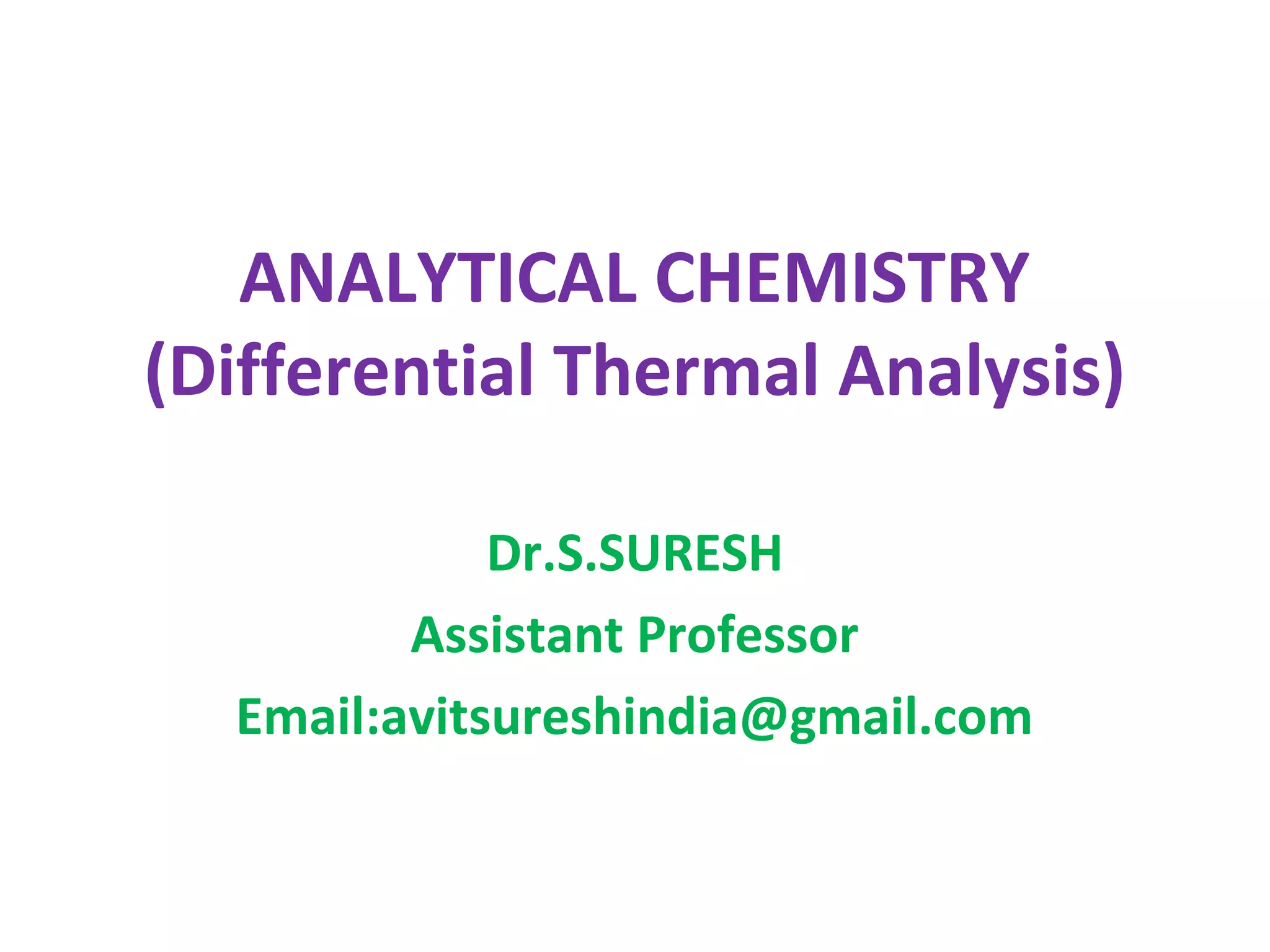 Differential thermal analysis (DTA) measures the temperature difference between a sample and an inert reference material as both are subjected to identical temperature programs in a controlled atmosphere. During endothermic or exothermic transitions in the sample, such as melting or chemical reactions, a temperature difference is recorded. The shape and size of peaks in the DTA curve provide information about the nature of the sample and the type of transition, such as phase changes or dehydration. DTA is used to study materials like polymers and drugs, determine heat of reactions, and test purity and quality of substances including cements, soils, and glasses.