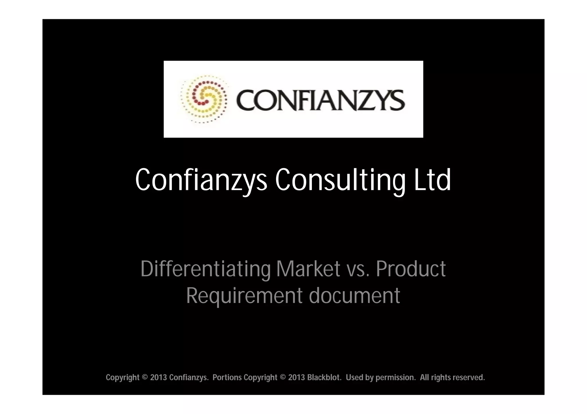 The document discusses differentiating between market requirements and product requirements. It explains that a Market Requirement Document (MRD) articulates market problems, opportunities, and requirements from the user perspective. A Product Requirement Document (PRD) then documents the product features from the solution perspective to address the needs defined in the MRD. Developing both documents is important to avoid underestimating the market and ensuring user needs are met.