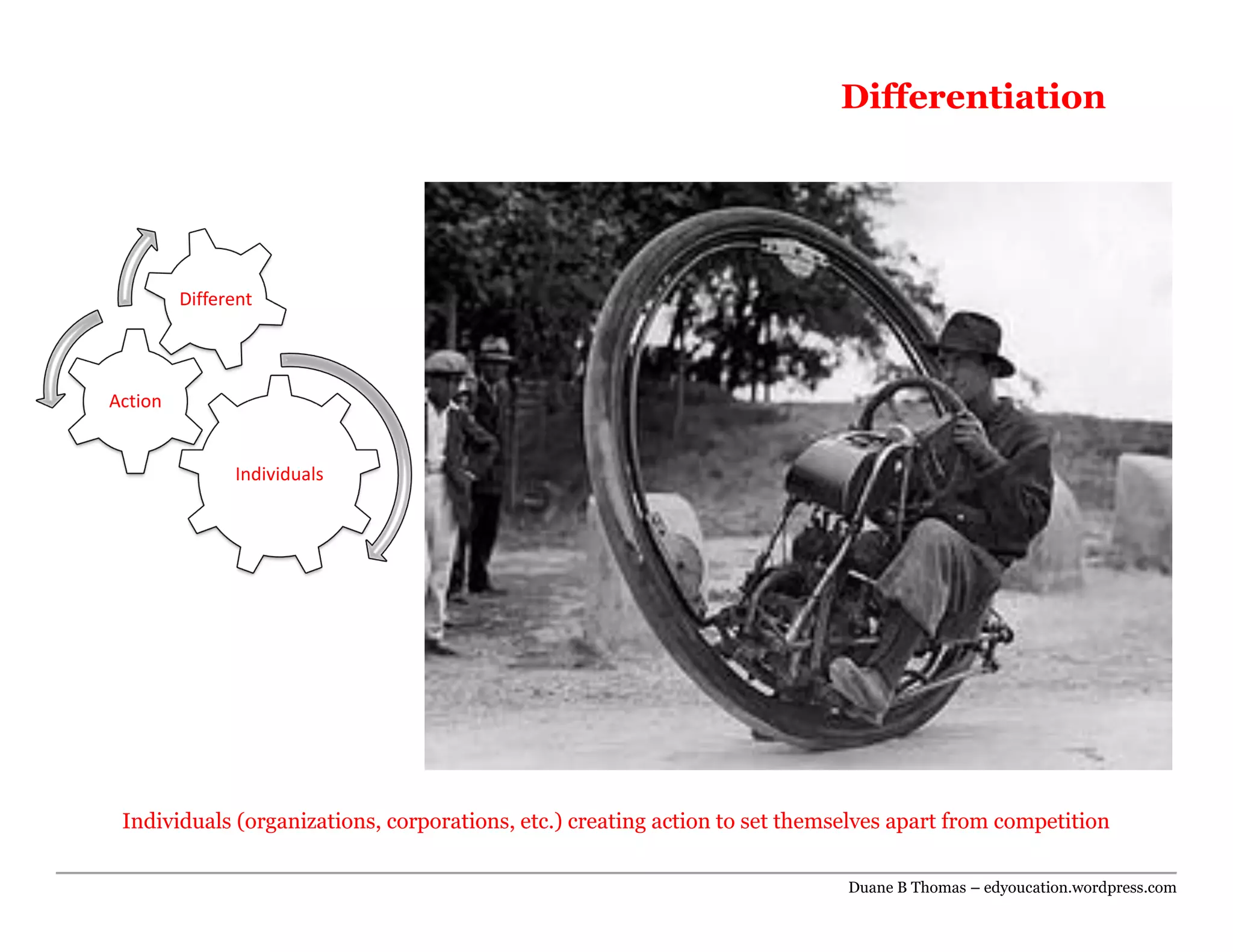 Individuals and organizations can differentiate themselves from competition through actions that highlight what sets them apart. Taking steps to stand out from others involves creating uniqueness in what you offer or how you do things. Successful differentiation requires identifying distinguishing qualities and leveraging them through strategic choices.