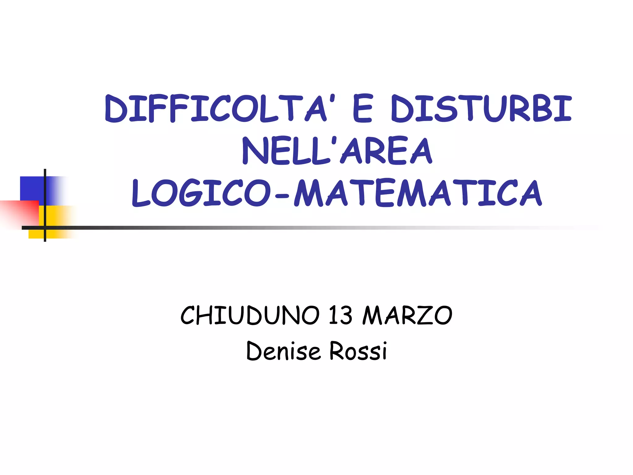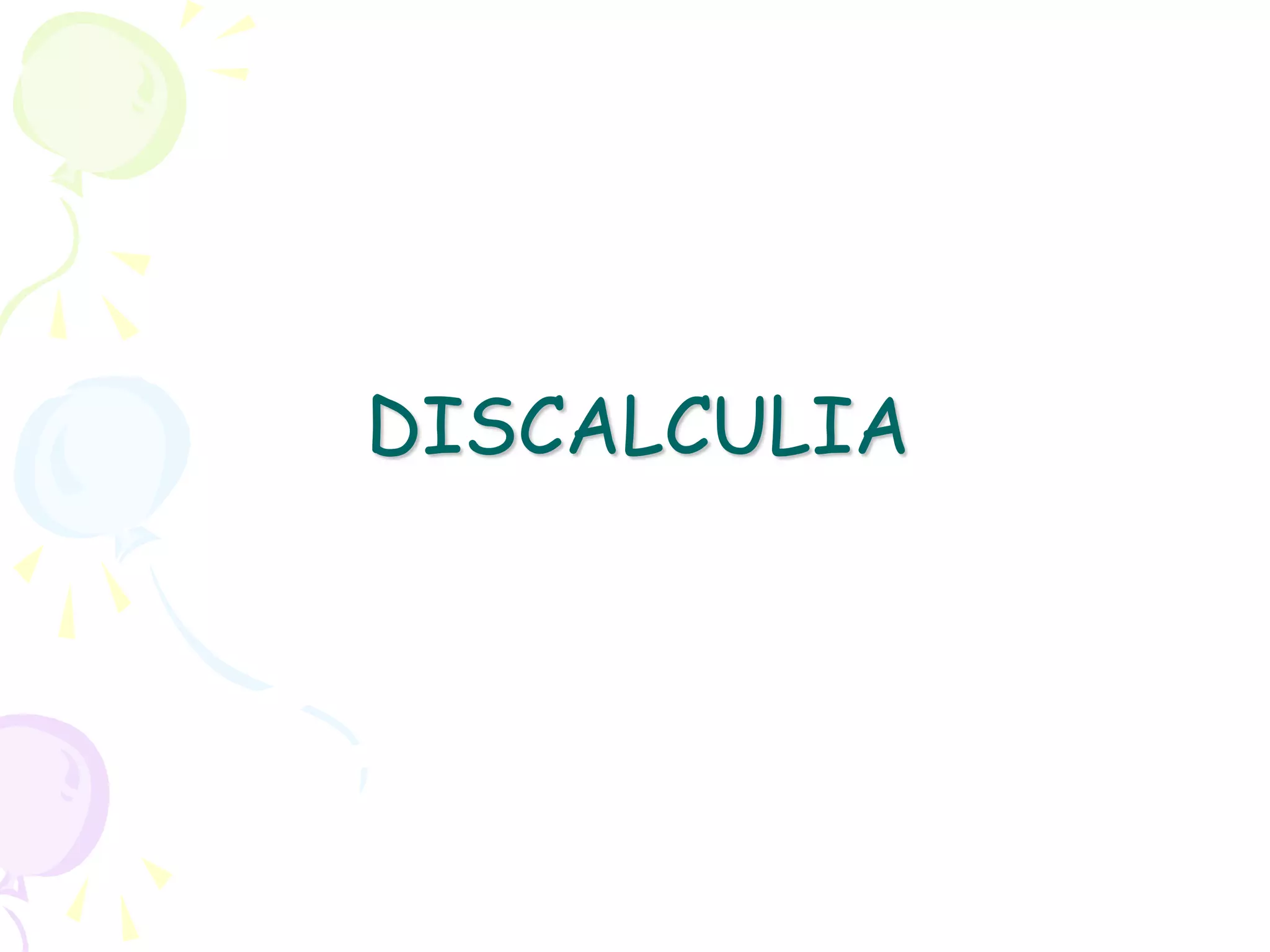 Il documento discute la discalculia evolutiva, un disturbo delle abilità numeriche manifestato in bambini con intelligenza normale, distinguendo tre tipologie di disturbo. Viene evidenziato come molti alunni abbiano difficoltà in matematica per mancanza di apprendimento attivo e come le neuroscienze suggeriscano che un supporto adeguato possa migliorare le competenze numeriche. Infine, si analizzano varie difficoltà nel conteggio, nella enumerazione e nel calcolo, sottolineando l'importanza dell'intervento educativo e l'uso di modelli cognitivi per valorizzare l'intelligenza numerica.
