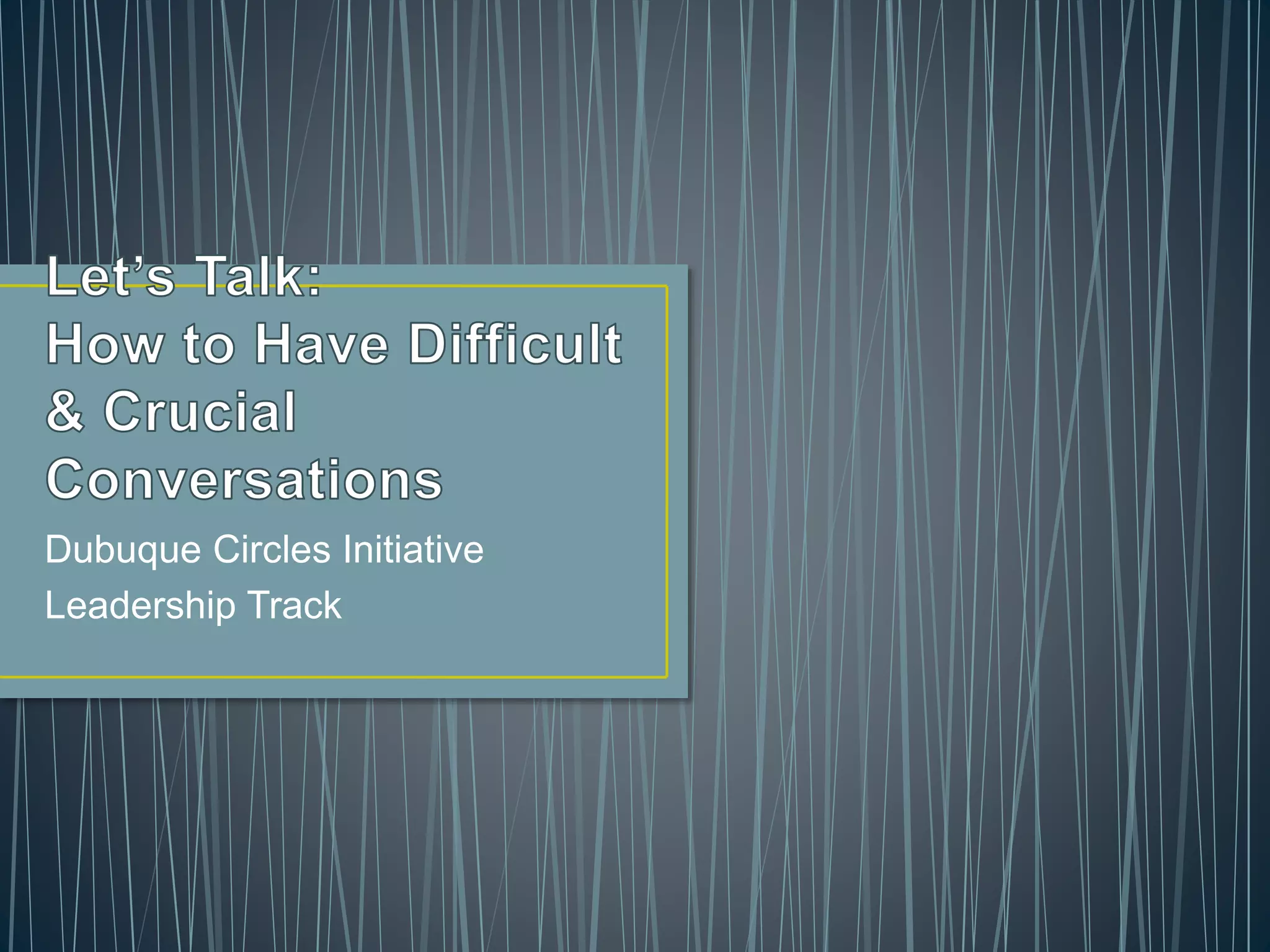 The document provides guidance for effectively handling difficult conversations. It discusses how difficult conversations typically involve high stakes, differing opinions, and strong emotions. It then offers tips for preparing for and having constructive difficult conversations, including understanding your own perspective and emotions, seeking first to understand the other person's perspective, finding common ground or mutual purpose, taking responsibility for your own role, and following up afterwards. The overall aim is to have difficult conversations in a respectful manner that improves relationships and outcomes.