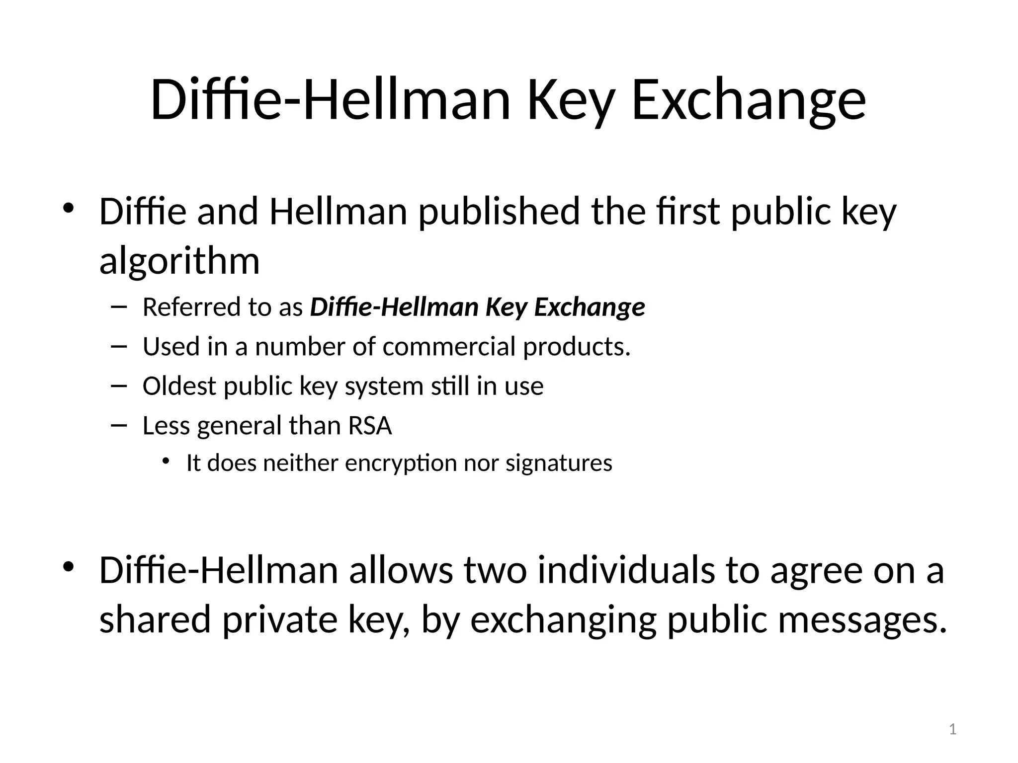 •Diffie-Hellman key exchange depends for its effectiveness on the