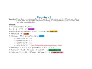 mod n. Plain text P can be obtain using the given formula. where, d =