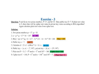 mod n where, P < n where C = Cipher text, P = Plain text, e = Encryption key and