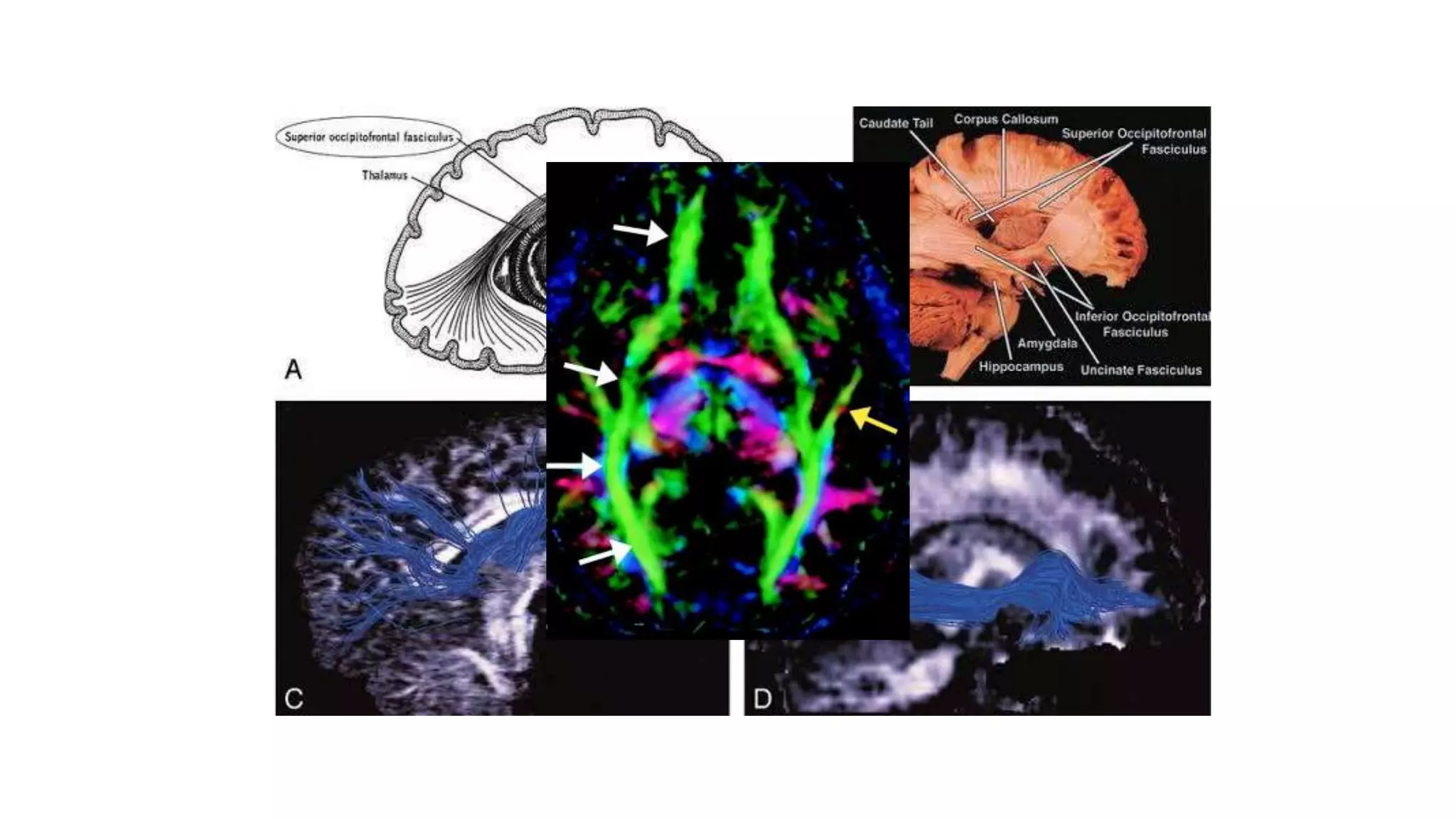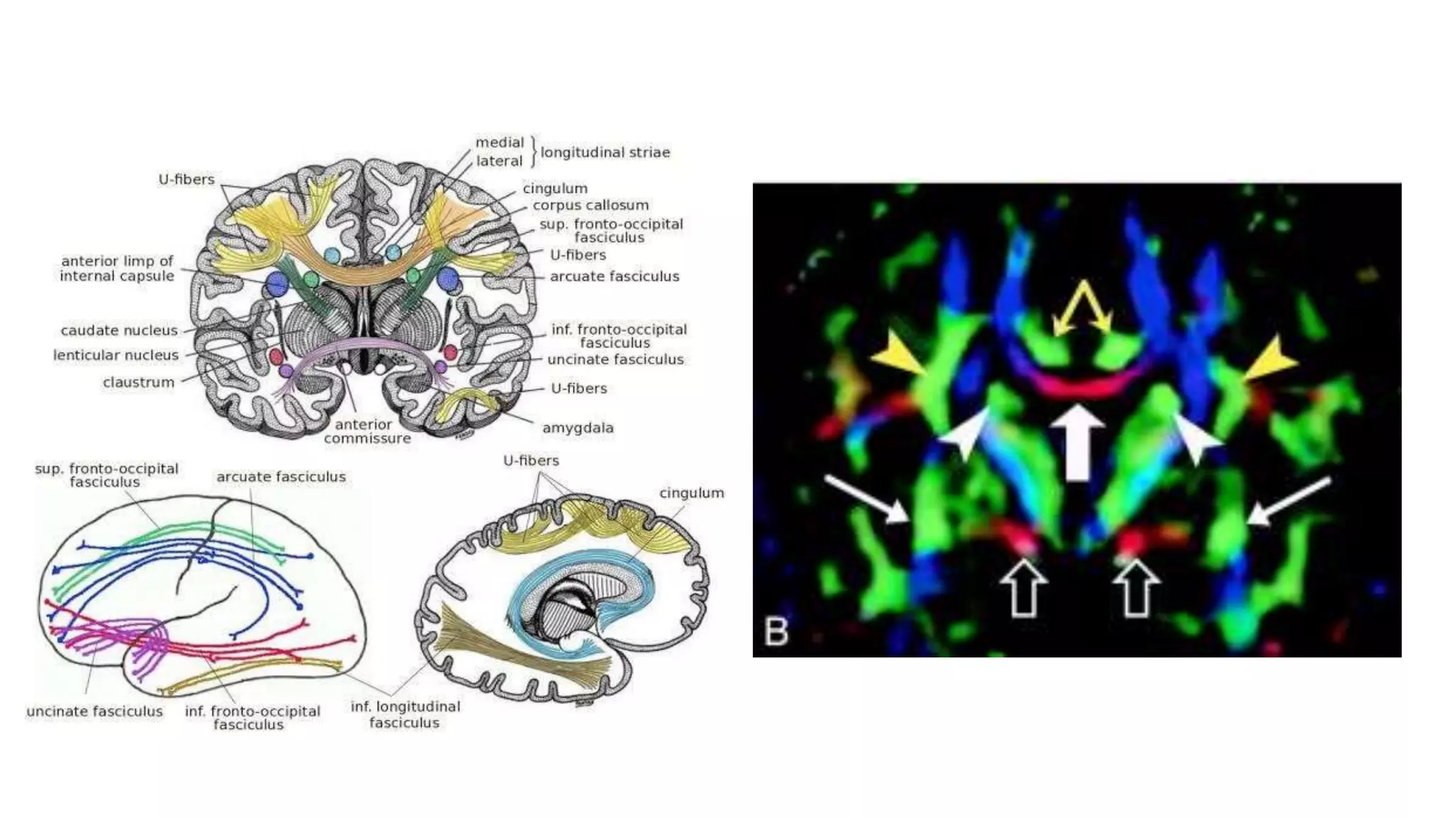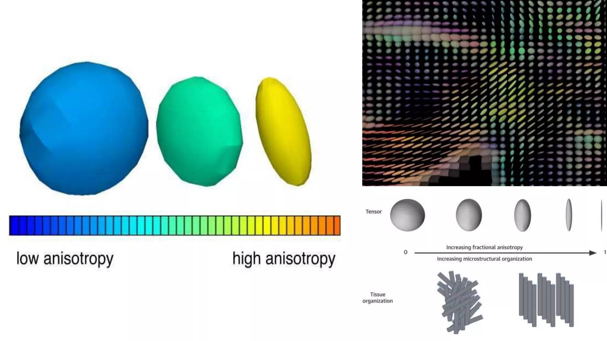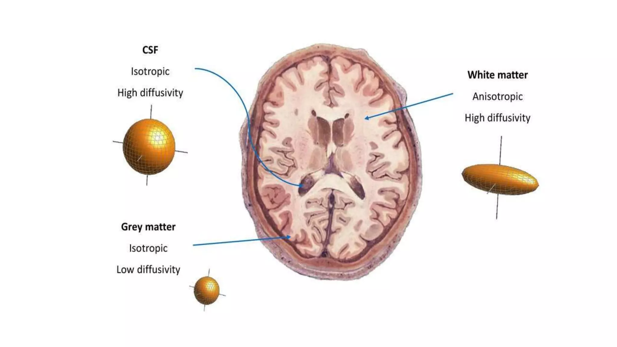 Diffusion tensor imaging (DTI) is an MRI technique that uses the diffusion of water molecules to generate contrast in MR images and estimate the macroscopic organization of axonal fibers in the brain. DTI collects data that is used in MR tractography, a 3D reconstruction technique to visualize and assess white matter tracts. DTI is able to detect anisotropic diffusion, where water diffusion has a preferred direction, in white matter tracts compared to isotropic diffusion where water moves randomly in all directions. Various DTI metrics like fractional anisotropy and tractography maps are used to visualize white matter tract orientation and connectivity in the brain.
