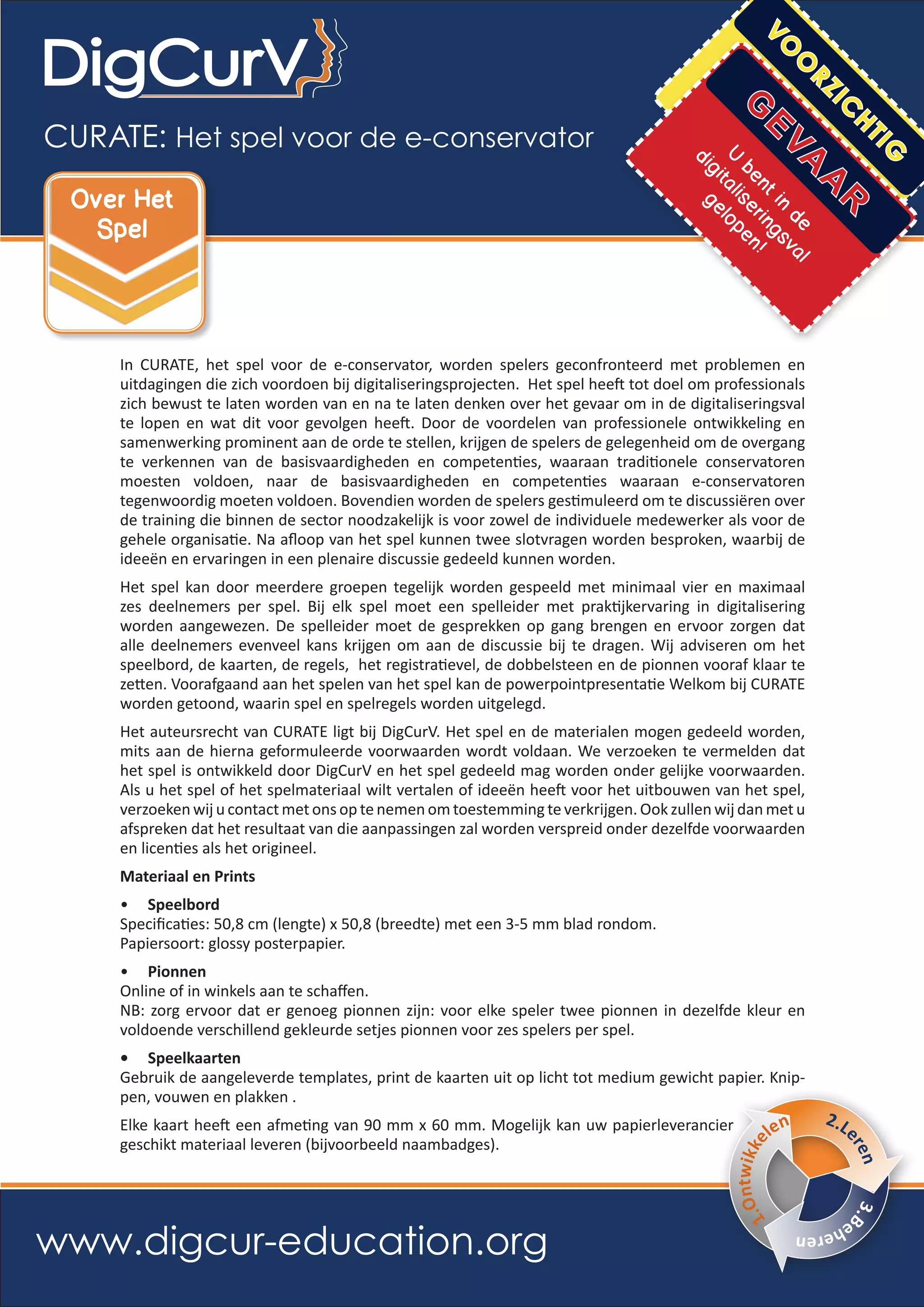 Het auteursrecht van CURATE ligt bij DigCurV. Het spel en de materialen mogen gedeeld worden,