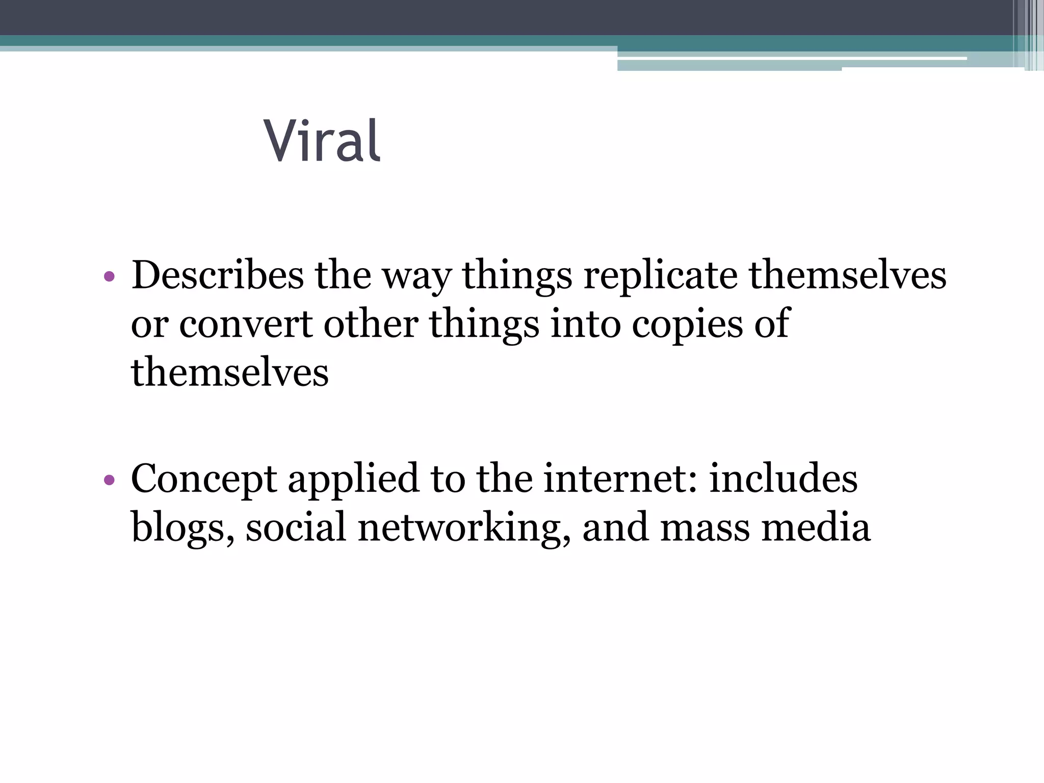Viral marketing relies on users to spread the message or product themselves through their social networks and existing online platforms. For a marketing campaign to go viral, it must be easy to share through no more than two steps, have a simple yet compelling message or product, and provide an incentive for users to spread the word, such as status or rewards. Examples that achieved viral success include Hotmail by including a message asking users to tell their friends and Cadbury's Dairy Milk commercials that were entertaining enough for users to want to share.