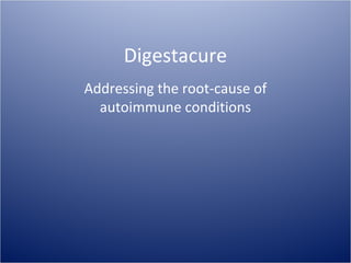 Digestacure is a product created by Pristine Nutraceutical in 1997 to address the root cause of autoimmune conditions. It has a 95% success rate after 4 months of use in eliminating the underlying causes of autoimmunity. The product and company information can be found by contacting Pristine Nutraceutical at their Florida address or phone number.