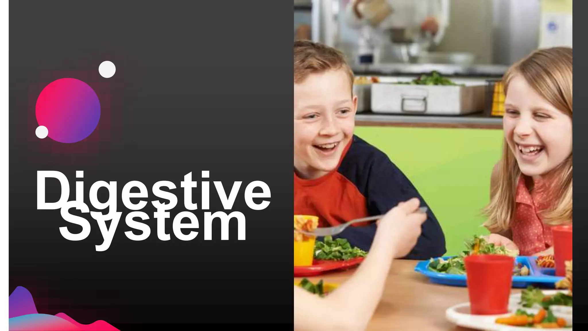 The digestive system breaks down food so that nutrients can be released and used for energy. Food travels through the digestive tract, which begins at the mouth and ends at the anus. The mouth contains teeth for breaking down food and saliva for softening it. Food then travels to the stomach through the esophagus and is further broken down by stomach acids and enzymes before moving to the small intestine, where most nutrient absorption occurs through villi. The large intestine then absorbs remaining nutrients and water before waste is excreted through the anus.