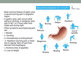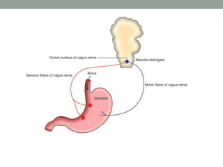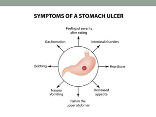 The digestive system breaks down food into nutrients that can be absorbed and used by the body. The mouth, stomach, and intestines make up the gastrointestinal tract, while accessory organs like the liver, pancreas and salivary glands aid digestion. In the mouth, chewing and saliva begin breaking down food. The stomach stores, churns, and breaks down food further using gastric juices and enzymes. The small intestine then absorbs nutrients before waste is eliminated in the large intestine and rectum.
